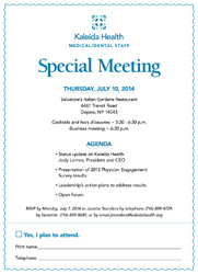All physicians are invited to a special meeting on Thursday, July 10, 2014 at Salvatore’s Italian Gardens Restaurant, 6461 Transit Road, Depew, NY 14043.