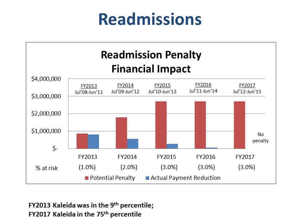 Kaleida Health is the only local hospital that did not receive a penalty for FY2017. The FY2017 readmission results reflect performance from July 1, 2012-June 30, 2015.