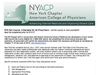 The NY Chapter ACP in conjunction with Boston University School of Medicine has developed a 3-hour online CME Course that is also eligible for 3 ABIM MOC points. By completing this online course and post test questions, all prescribers will satisfy the requirements and obtain the necessary certificates as mandated by Chapter 71 of the Laws of 2016.
