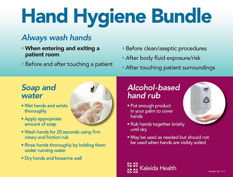 Kaleida Health staff recently participated in an emergency call-to-action to improve hand hygiene and reduce hospital acquired infections (HAIs). Please remember, if you cross the plane of the door, regardless if you touch anything, you must perform hand hygiene.