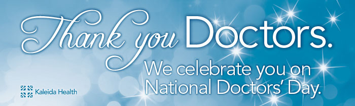 In honor of National Doctors’ Day, Kaleida Health is hosting special breakfasts at each of our hospitals on Thursday, March 30, 2017 from 7-9 a.m. to recognize physicians’ tireless efforts. Physicians will receive a formal invitation to the breakfasts in the mail with a token of our appreciation. Thank you for always leading with CARE!